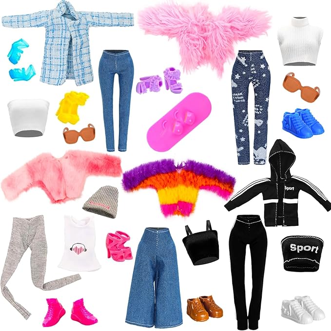 23 Pieces Doll Clothes & Accessories for 11.5 Inch Girl Dolls Include 5 Tops 5 Pants Fashion Outfits 5 Coats Jacket 5 High Heels 5 Flat Shoes and 3 Accessories for 11.5 Inch Girl Dolls Fashion Set