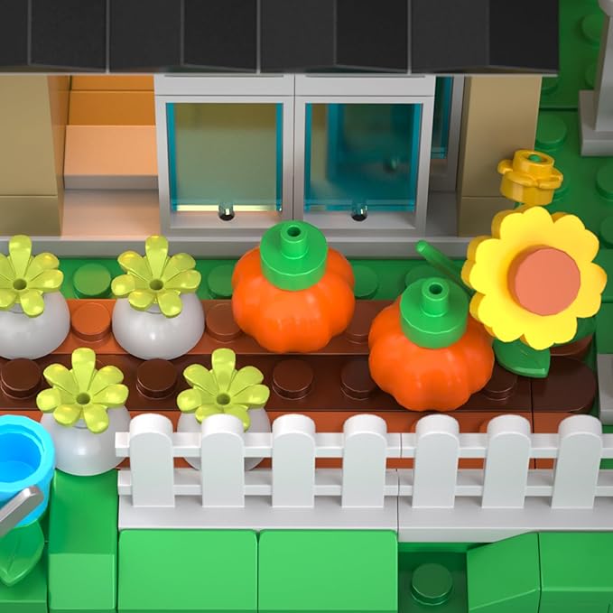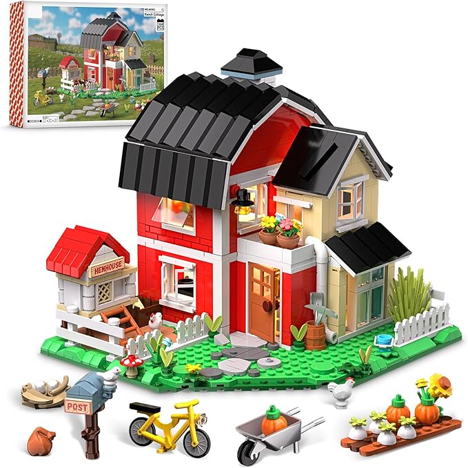 Farm House Building Set with Lighting Kit - Ranch Cottage Building Blocks Set with Chicken Coop, Flowers, Animals - Display for Home Office Decor, Gift for Adults Teen Kids 8+ (1268 PCS)