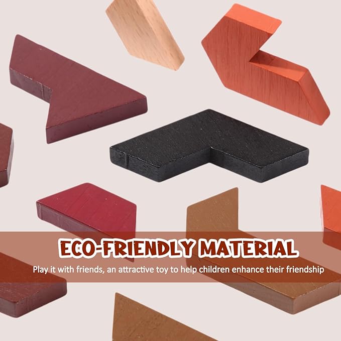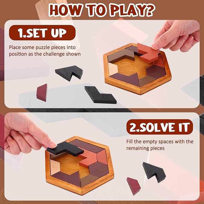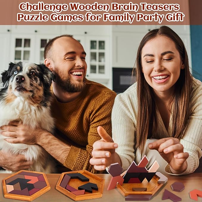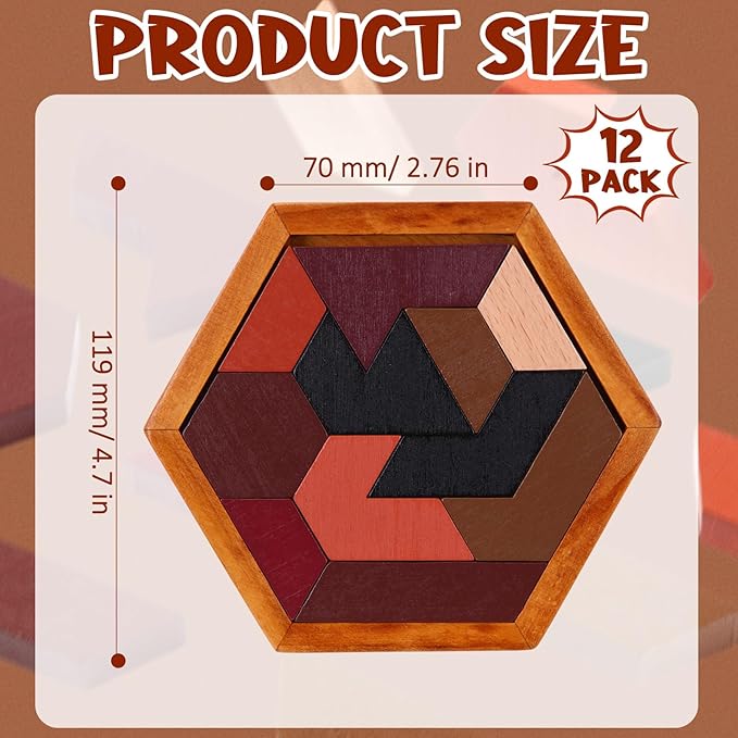 Yilloog 12 Pack Hexagon Tangram Puzzles Wooden Brain Survivor Puzzles for Adult Challenge Hexagon Tangram Brain Teaser Wood Geometric Jigsaw Russian Blocks for Family Party Gift Logic Game