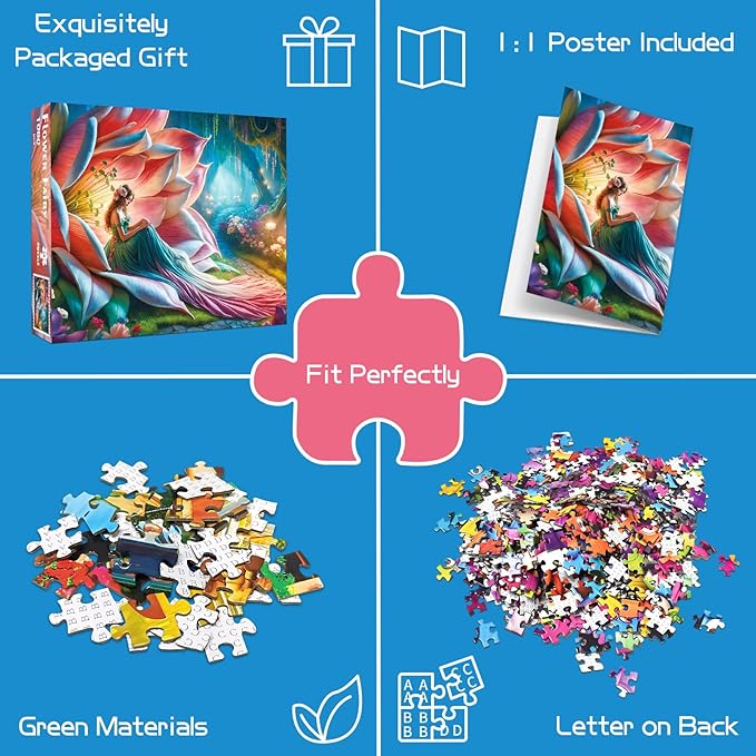 Flower Fairy Jigsaw Puzzle, Mythology Jigsaw Puzzles, Fairy Tale Forest Princess Challenging Puzzles for Adults 1000 Pieces, Home Decoration Puzzle, Interlock Perfectly No Dust