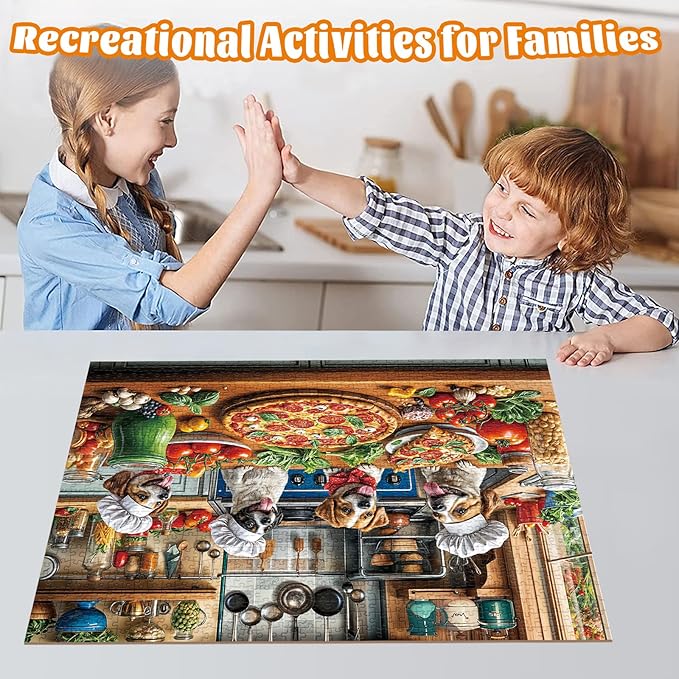 Funny Dog Pizza Jigsaw Puzzle, 1000 Piece Puzzle for Adults, Food Kitchen Jigsaw Puzzle, Animal Pet Lover Challenging Puzzles, Home Decoration Puzzle, Interlock Perfectly No Dust
