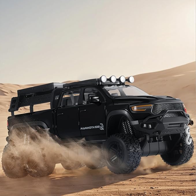 Toy Trucks for Boys 1/32 Diecast Trucks Mammoth Model Truck,Collectible Pickup Truck Model Kit,Pull Back Cars with Lights and Sounds,Toy Trucks for Boys Age 4-7(Black)