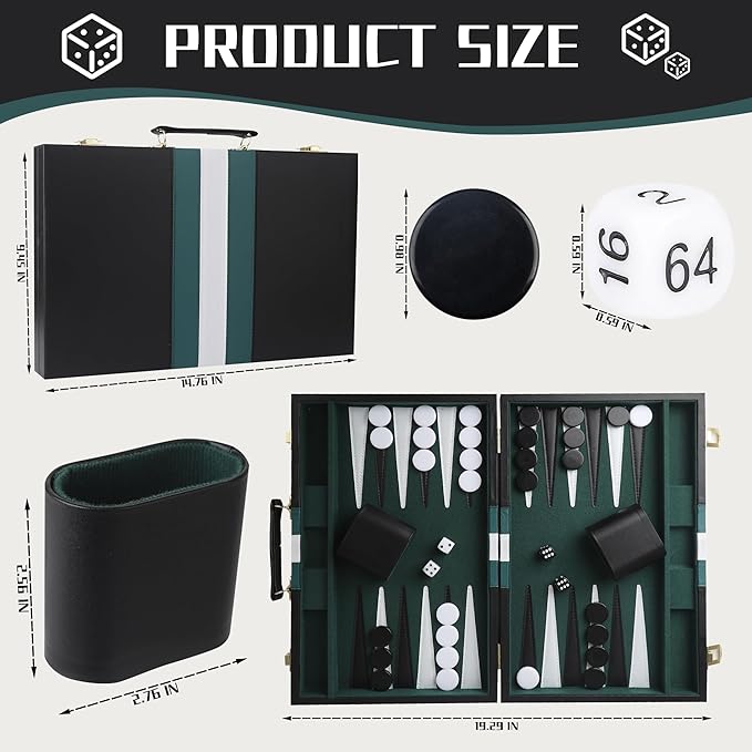 About This 【Classic Backgammon Set for Adults】: This 15-inch backgammon board game is designed for both beginners and experienced players.... Read more