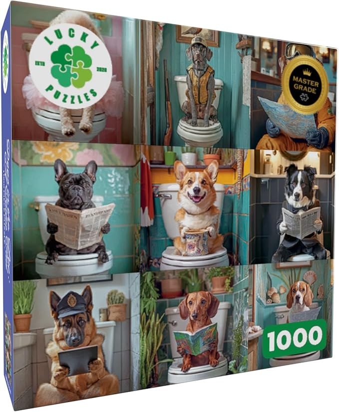 Lucky Puzzles - Dogs in The Loo: A Toilet Tail - 1000 Piece Jigsaw Puzzle for Adults | Funny Dogs Puzzle | Hilarious Dog Bathroom Humor Puzzle