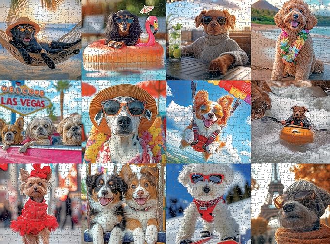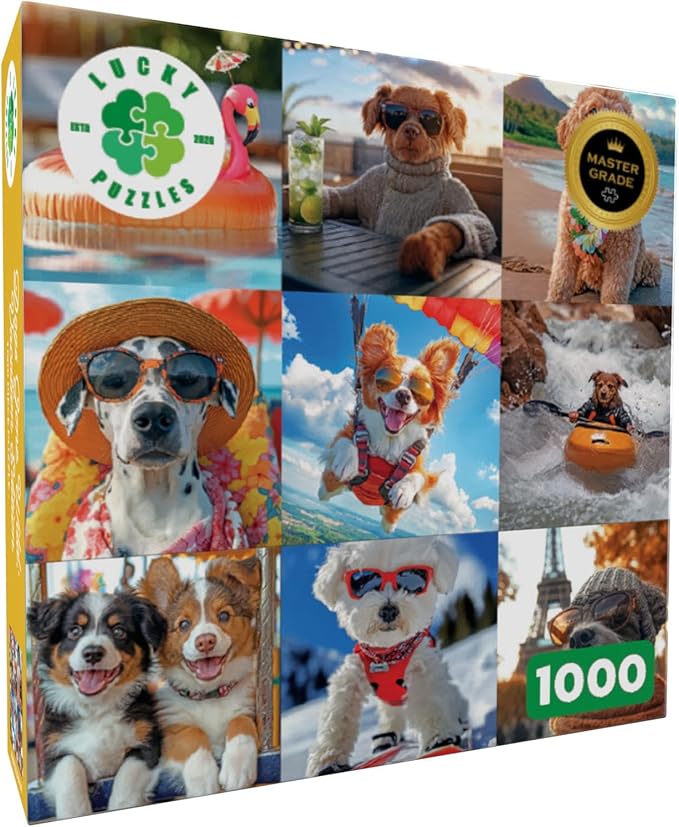 Lucky Puzzles - Dogs Gone Wild: Vacation Edition - 1000 Piece Jigsaw Puzzle for Adults | Fun and Whimsical Dog Puzzle | Best Dog Puzzle for Adults