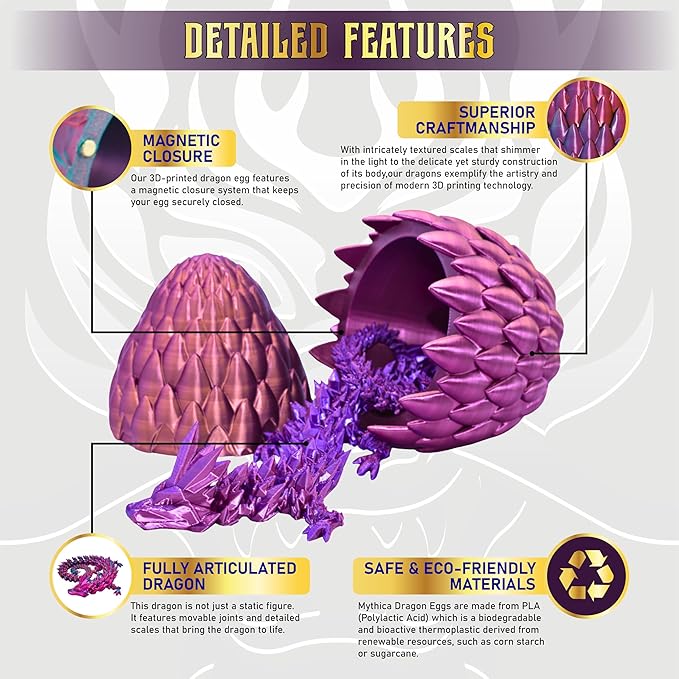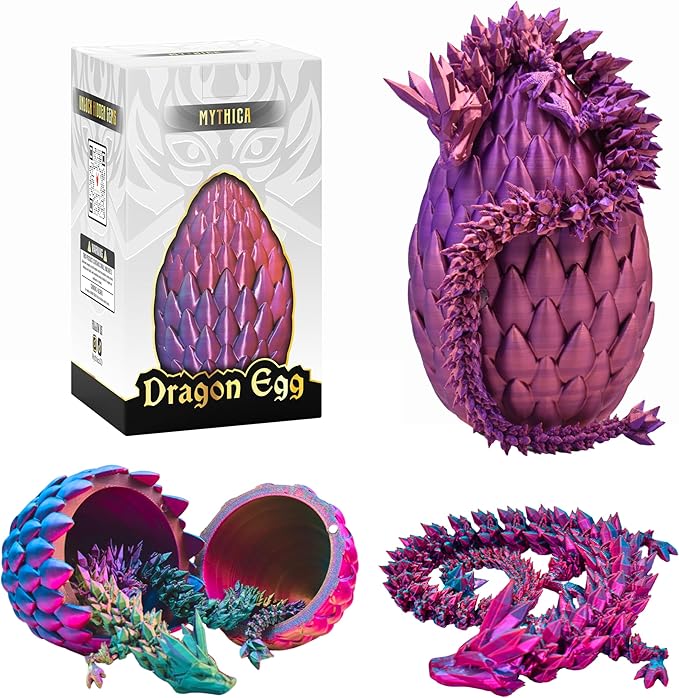MYTHICA 3D Printed Dragon Egg Unleash Your Imagination with Our Crystal Mystery Dragon Egg Collection Fully Articulated Fidget Desk Toy for ADHD, Autism, Anxiety & Stress Relief (Violet Flame)
