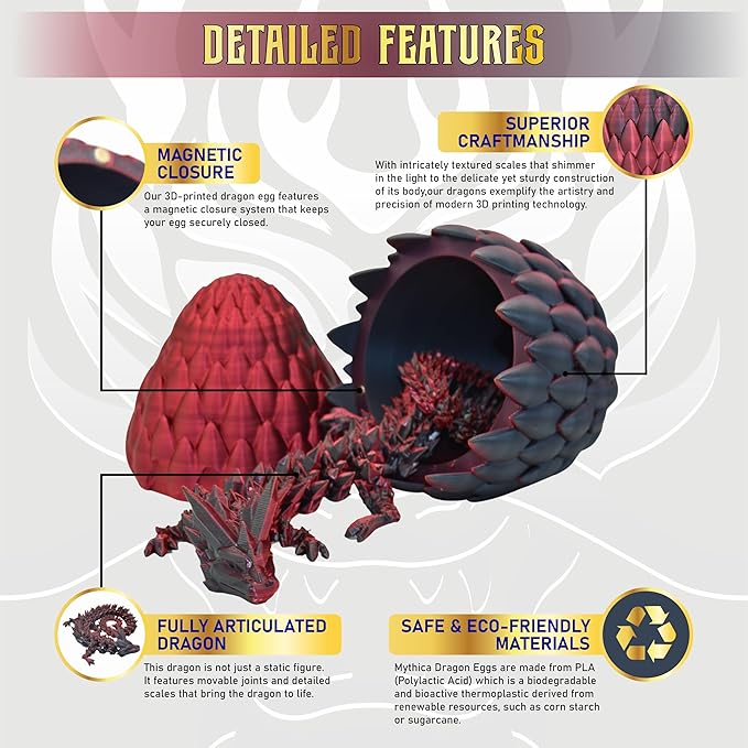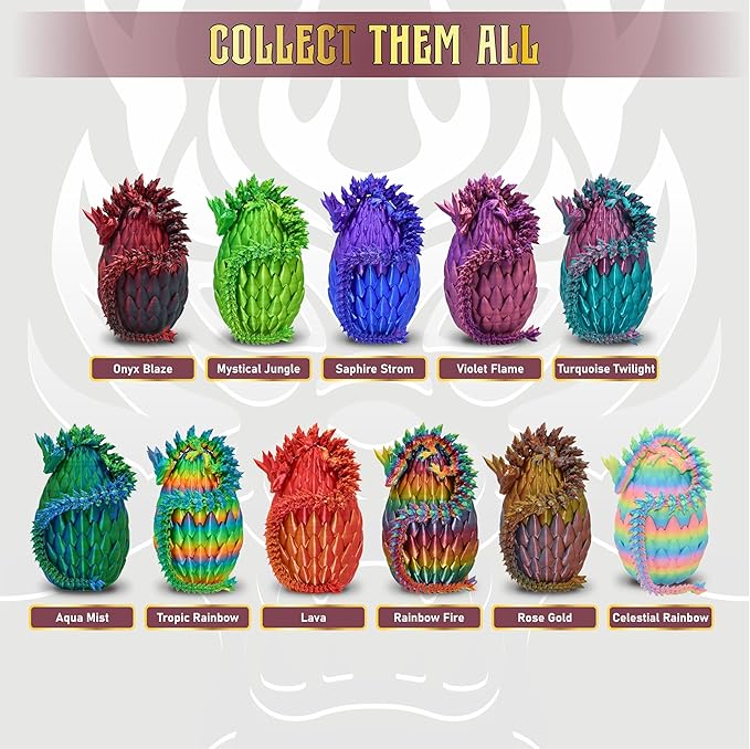 MYTHICA 3D Printed Dragon Egg Unleash Your Imagination with Our Crystal Mystery Dragon Egg Collection Fully Articulated Fidget Desk Toy for ADHD, Autism, Anxiety & Stress Relief (Onyx-Blaze)