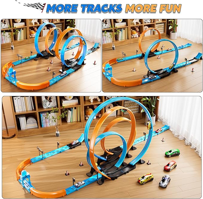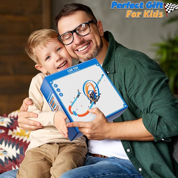 Toy Car Race Track Set for Boys Kids Age 3-5 4-7, Race Tracks with 4 High-Speed Pull Back Race Cars and Crash Zones, Christmas Halloween Birthdays Gifts Toys for Boys Kids 4-6 8-12 Years Old