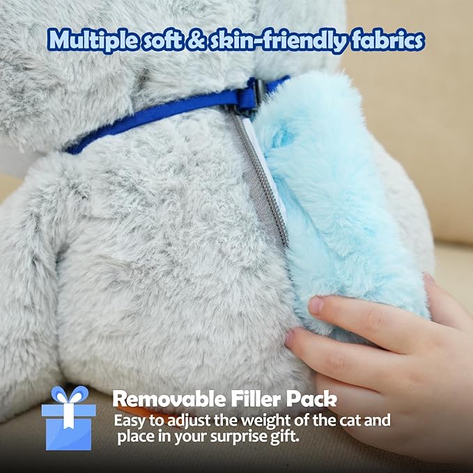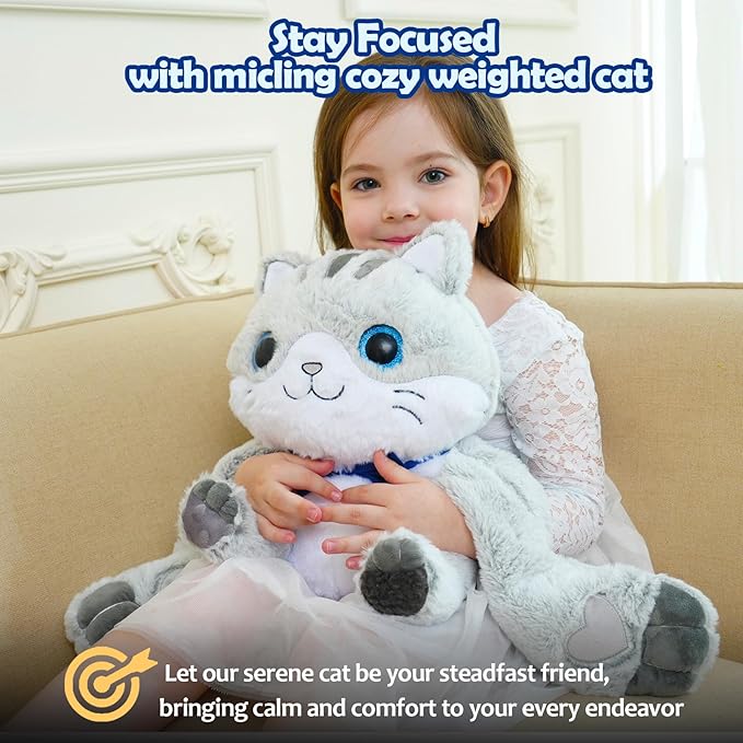 Weighted Stuffed Animal - Grey Cat 4.5 lbs, Ideal for Sensory Needs, Austism & Anxiety | Comfort & Relaxation for Both Kids and Adults