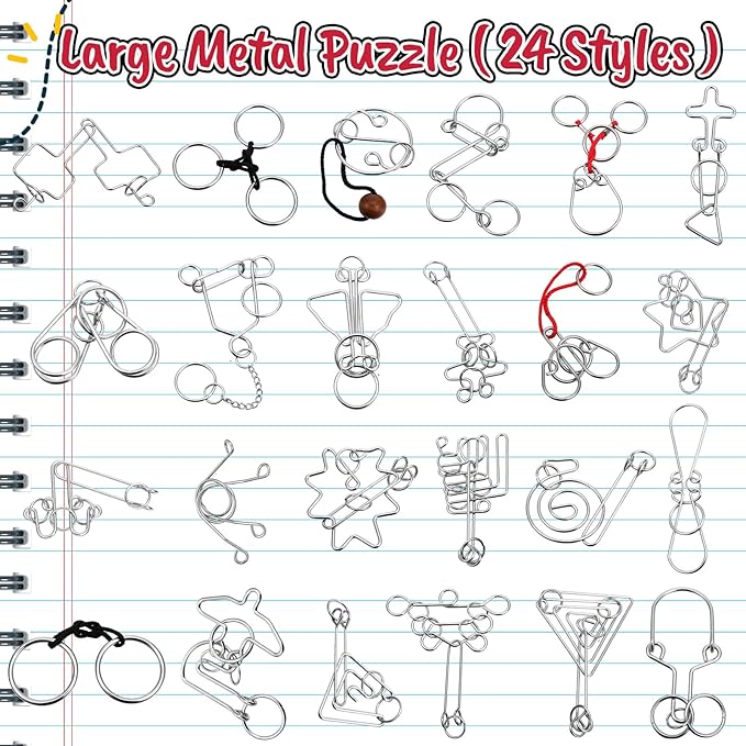 About This 24 Pack Large Metal Puzzles: the package includes 24 different styles metal brain puzzles each with gift box... Read more