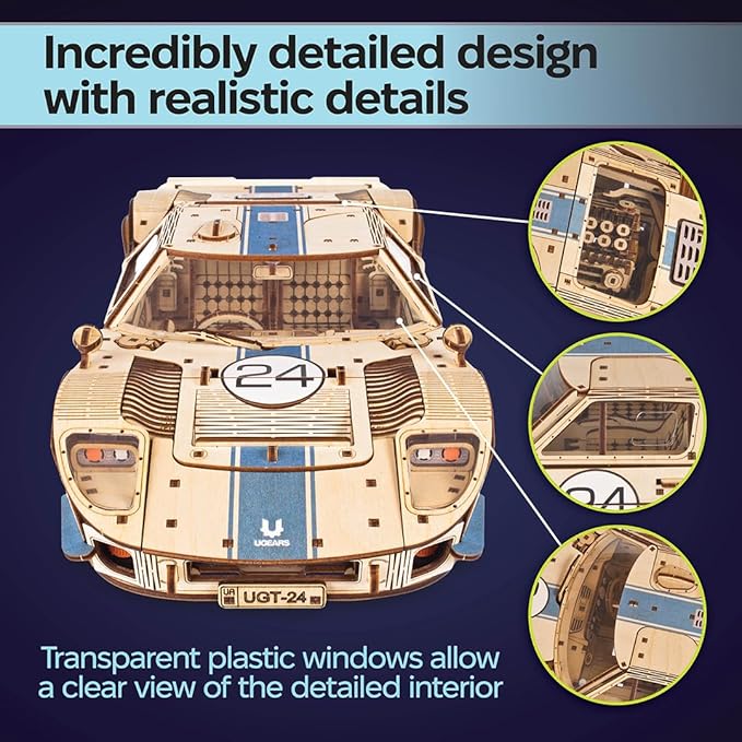 UGEARS UGT-24 Endurance Racer 3D Wooden Puzzles for Adults - DIY Model Car Kits 3D Puzzle, Mechanical Wooden Model Kits for Adults to Build, Wood Sports Car Racing Brain Teaser, Hobby Gift