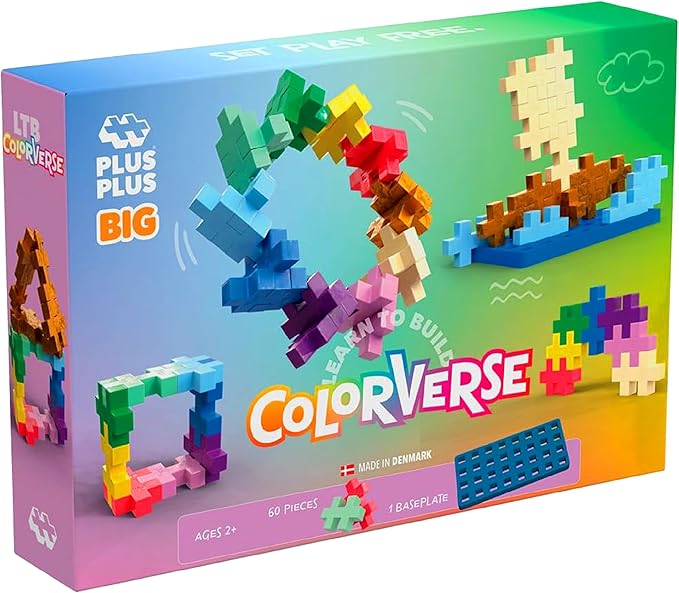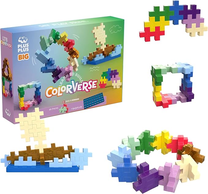 PLUS PLUS Learn to Build Big, Building Toys Set for Toddlers and Preschoolers, Stem Toys for 3+ Year Old, 60 Interlocking Blocks - Colorverse