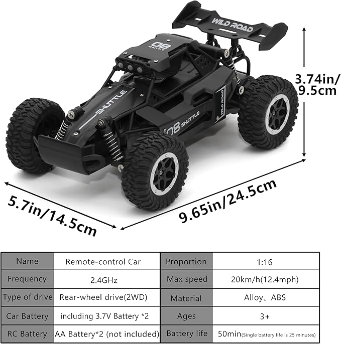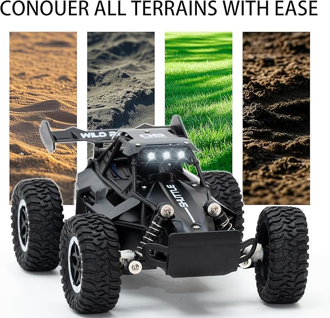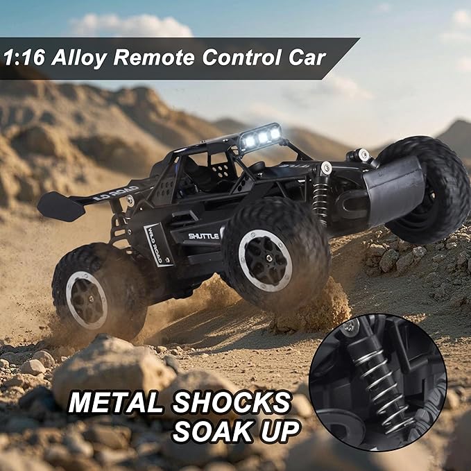 Remote Control Car RC Cars 1:16 All Terrain Monster Truck LED Headlights, Outdoor 2WD Off Road Hobby RC 2.4GHz High Speed, 20Km/h RC Car Toys Gift for Kids Boys 3 4 5-12 (Black)