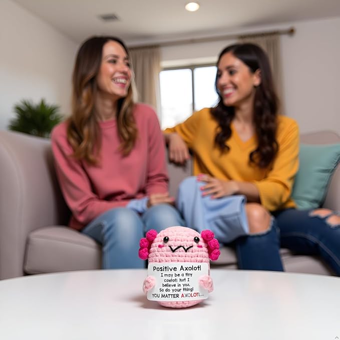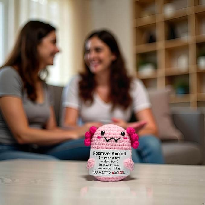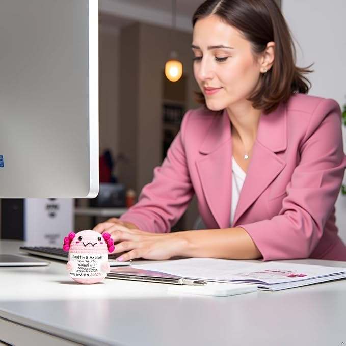 Positive Mini Axolotl Charm Buddie - Emotional Support Crochet Dolls Positive Crochet Animals Gifts Emotional Support Plush Stuffed Animal for Anxiety & Stress Relief