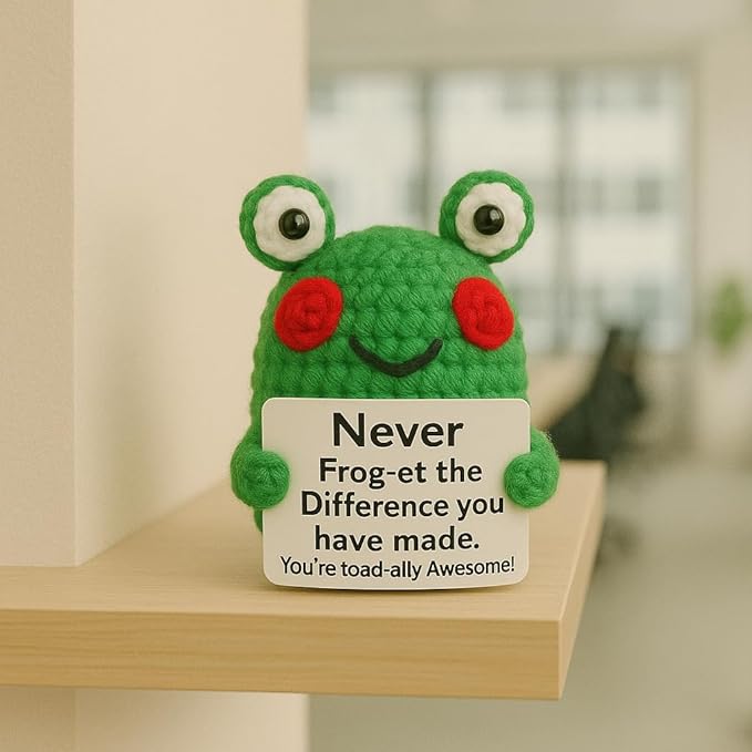 Positive Crochet Frog Inspirational Gifts, Emotional Support Crochet Frog, Handmade Positive Crochet Animals Desk Decor Coworker