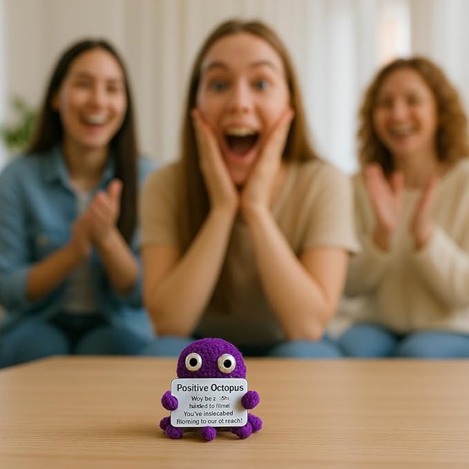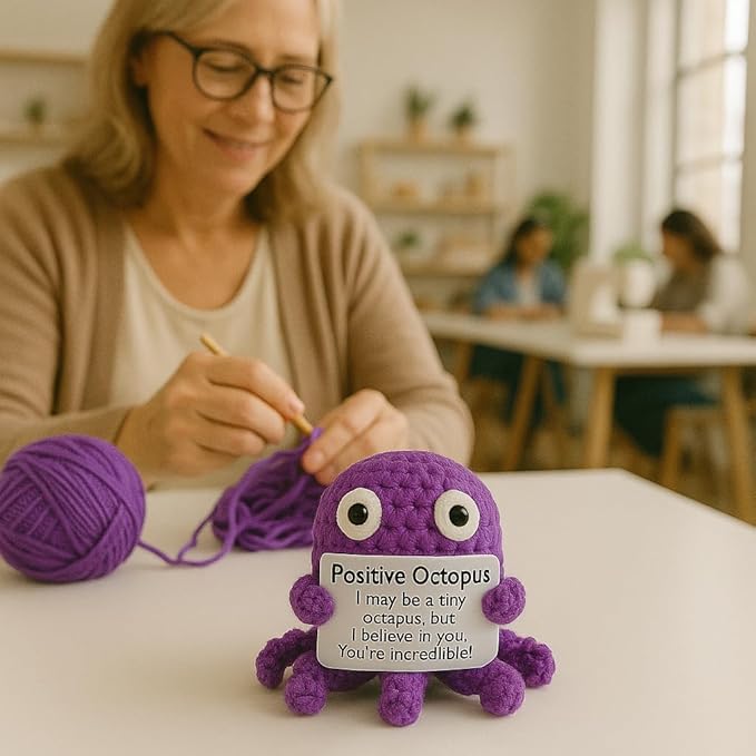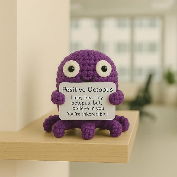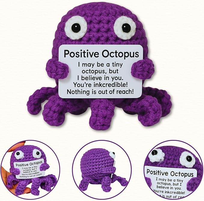 Positive Octopus - Emotional Support Crochet Dolls, Positive Crochet Animals, Emotional Support Plush Gift, Stuffed Animal for Anxiety & Stress Relief