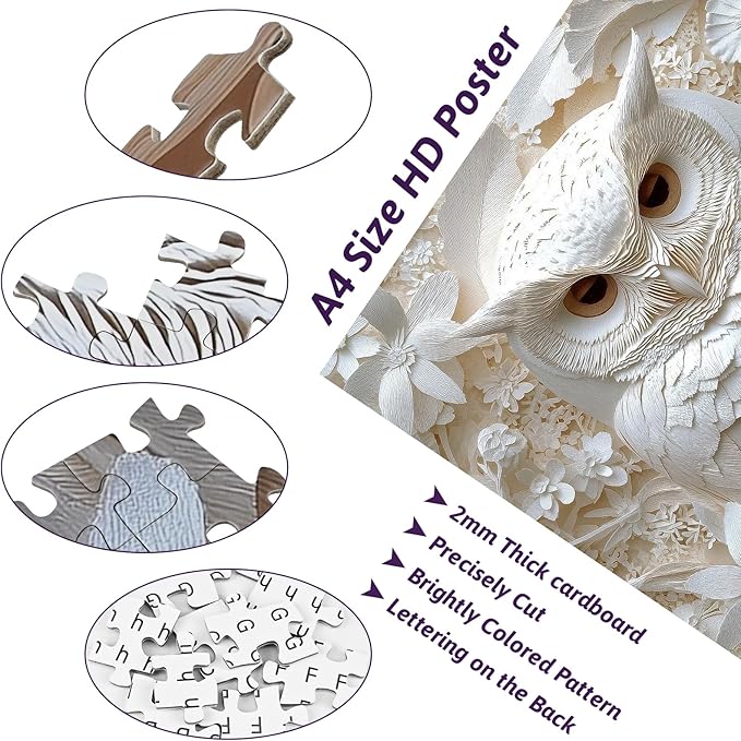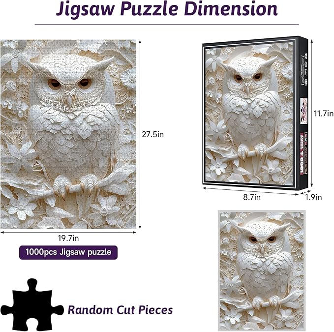 About This 1000 Pieces Jigsaw Puzzles for Adults: This puzzle shows a white owl with super detailed feather - like... Read more