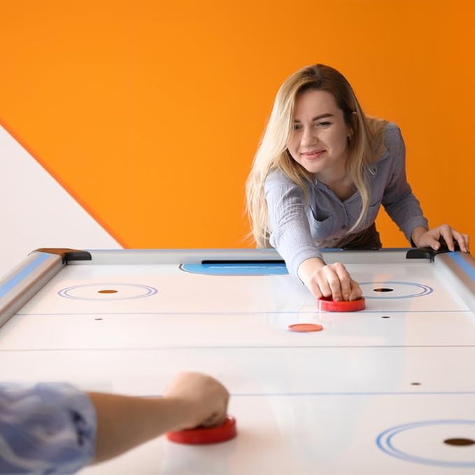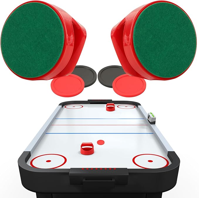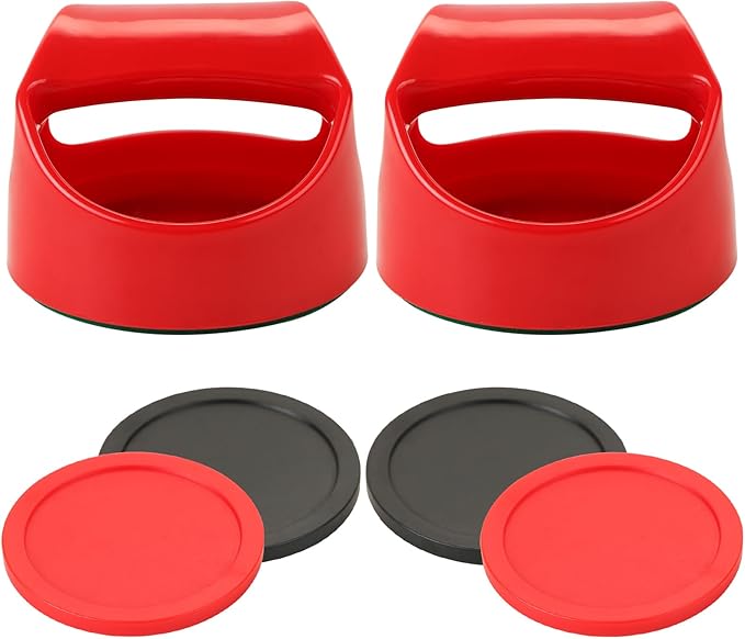 About This Products Included: 2 red air hockey pushers and 4 air hockey pucks(2 Red and 2 Black) Product Quality:... Read more