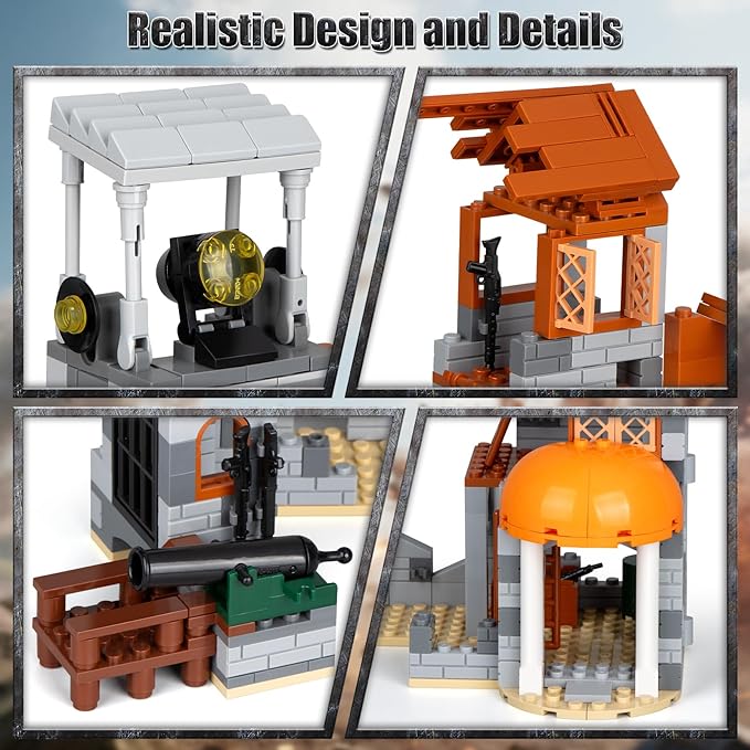 Finger Rock Military Base Building Block Set, WW2 Army War Accessories Kits, Defence Base Guard Tower Guns Weapons Building Block Toy for Teens 14+