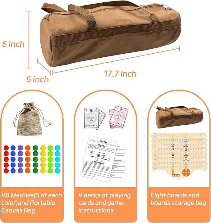 Solid Wood Marbles and Jokers Board Game: Versatile Family Entertainment for 2-8 Players, Featuring Interlocking Game Boards, Multiple Colors, Marbles, and Card Decks Ideal for Parties and Game Nights