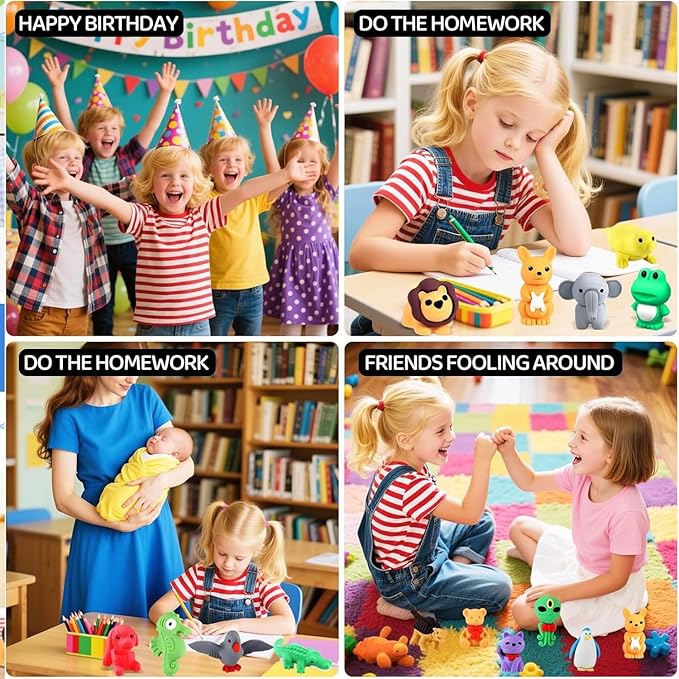 About This PUZZLE PENCIL ANIMAL ERASERS: Pack of 121 food animal erasers desk pets simple puzzle erasers toys in realistic... Read more