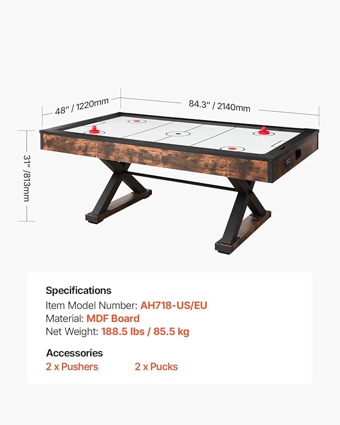 VEVOR 84" Air Hockey Table, Indoor Arcade Table Gaming Set with 2 Pushers, 2 Pucks, Electronic Scorer, X-Shaped Legs & High-Powered Blower, Air Powered Hockey Game Table for Family Game Room Office