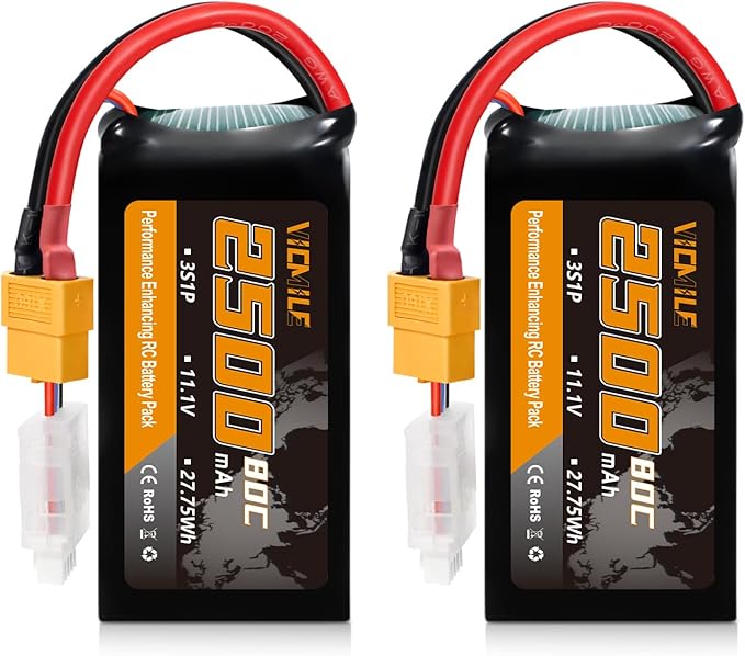 3S Lipo Battery 2500mAh 11.1V 80C High Discharge Rate Shorty Pack RC Batteries with XT60 Plug Fit for RC Airplane FPV Quadcopter Helicopter Drone and Racing RC Hobby Models 2500 High Capacity
