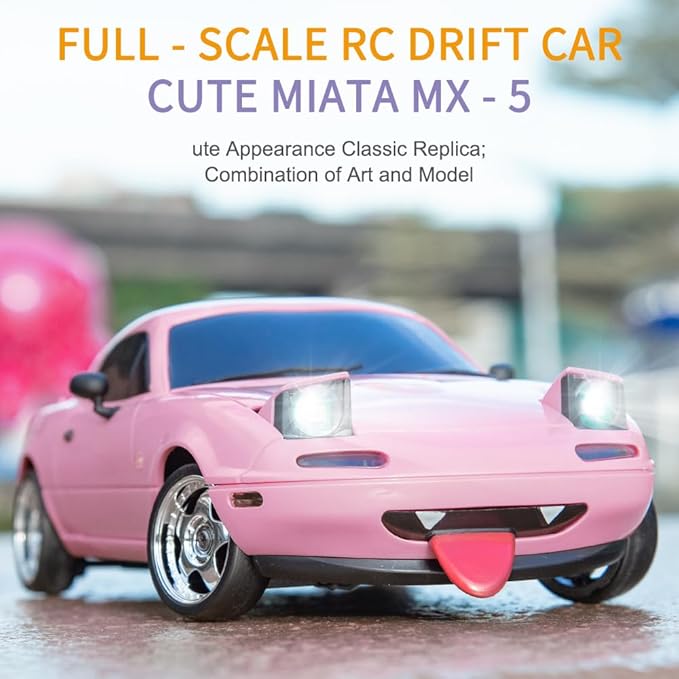 LD1804 RC Drift Car 1:18 Scale Mini MX-5 RWD 2.4GHz Miata RC Vehicles with Gyro and LED Lights for Adults Hobby Toys (Pink)