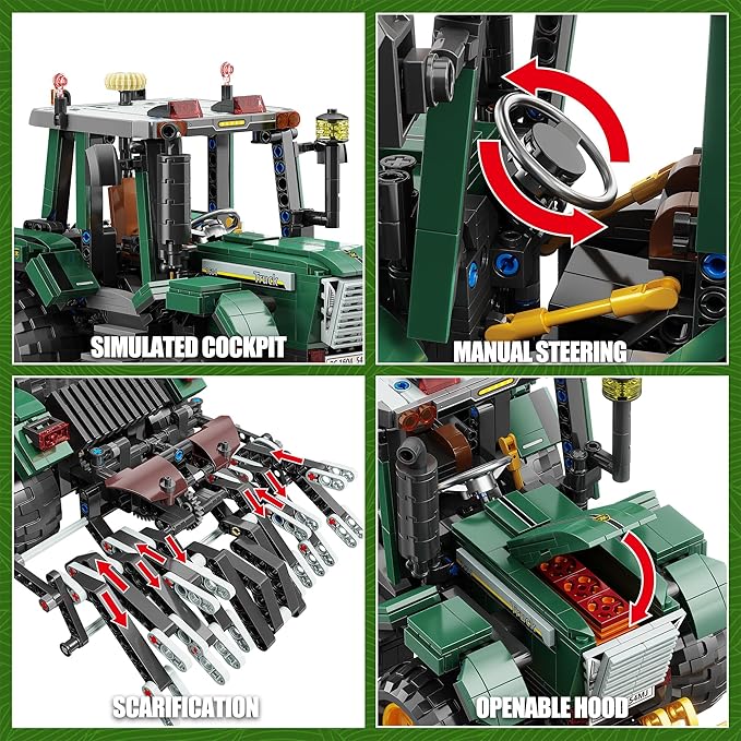 About This 【Cool Farm Tractor Building Set】The forest green exterior and four huge real rubber tires combine yellow wheels make... Read more