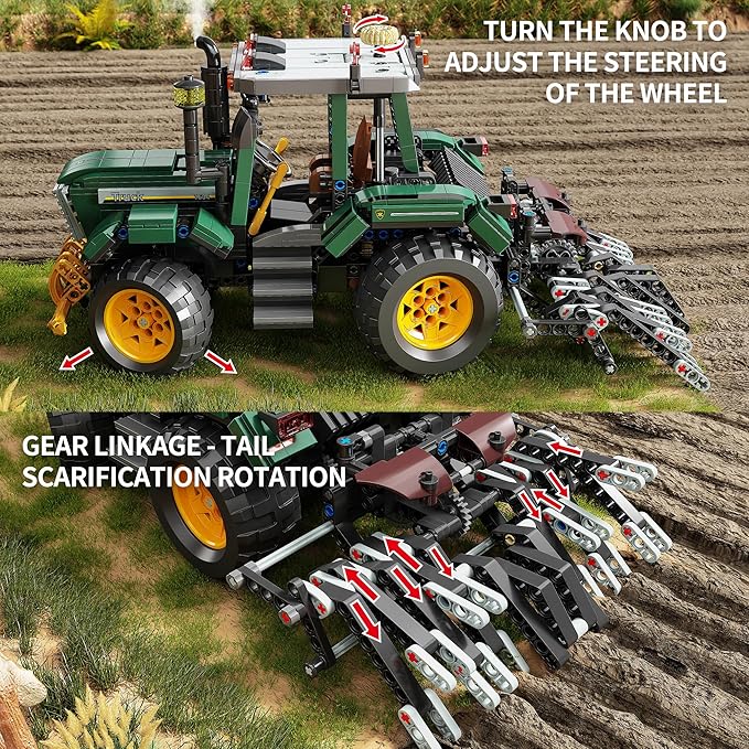 Farm Tractor Building Blocks Set,Wheeled Tractor Building Toys with Mechanical Gear Linkage,STEM Farming Truck Construction Model,Birthday Gift for Adults and Girls Boys 8-14 (1204Pcs)