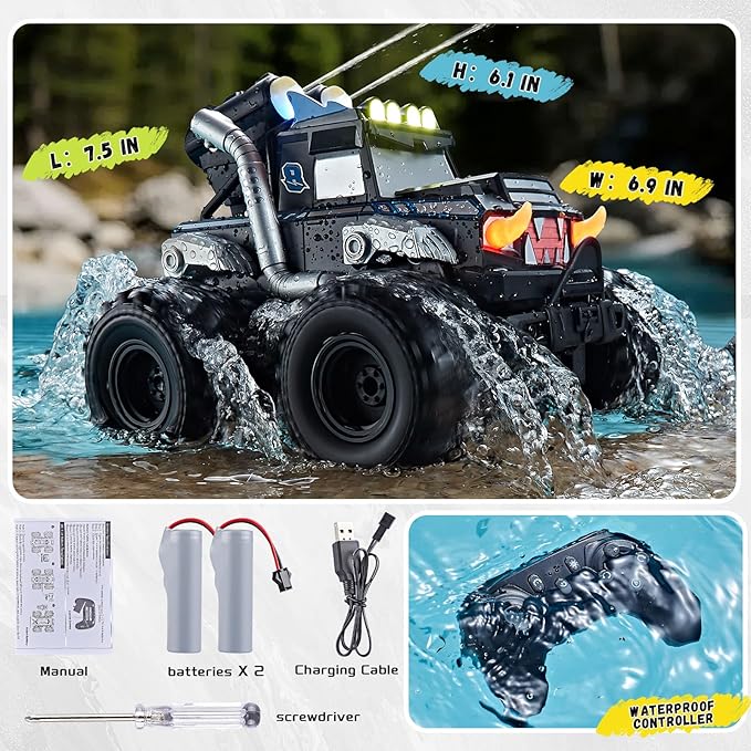 About This 【3-in-1 Amphibious RC Stunt Car/Boat/Water Gun】Combining the functions of an RC car, RC boat, and water gun, it... Read more