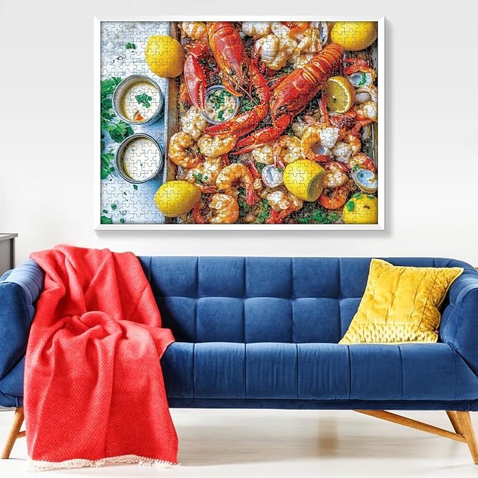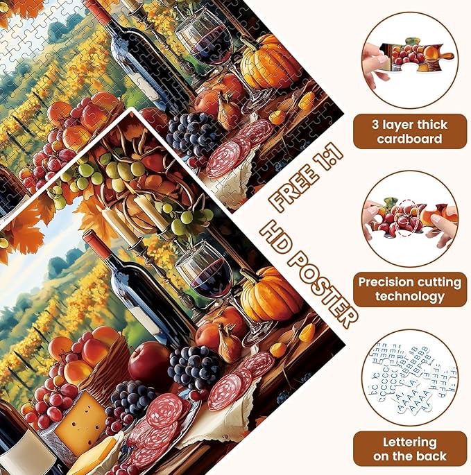 About This [Seafood and wine Jigsaw Puzzle Set]:This 500-piece jigsaw puzzle set, featuringseafood feast, an autumn vineyard, and a lively... Read more