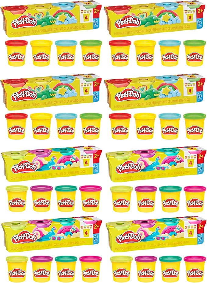 Play-Doh Bulk 4 Pack Vibrant Colors, 32 Colorful 3 Ounce Cans of Modeling Compound, Kids Arts & Crafts, Preschool Toys for Girls & Boys 3+