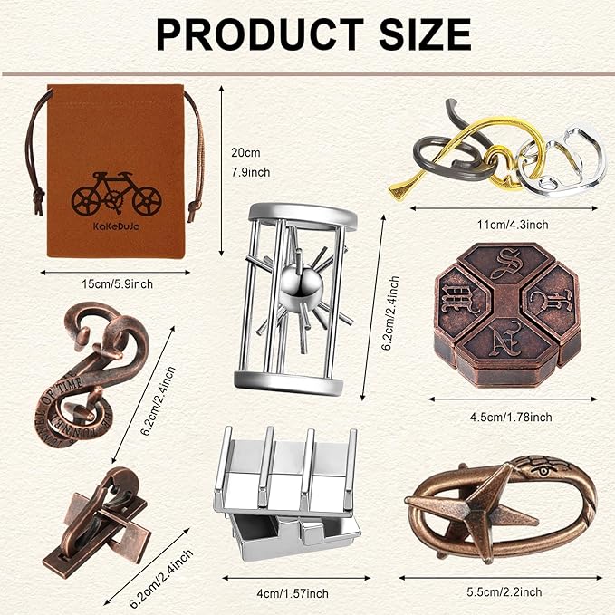 • 【EXQUISITE CRAFTSMANSHIP】Our mind puzzles for adults are made of high-grade metal, sleek to the touch, sturdy and secure, with no rough edges. Designed for durability, they can be enjoyed for years to come
