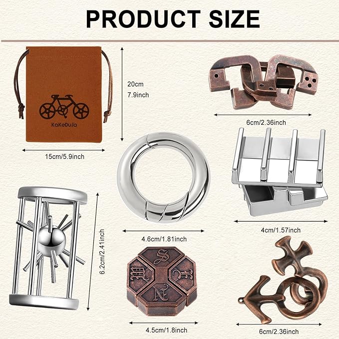 • 【EXQUISITE CRAFTSMANSHIP】Our mind puzzles for adults are made of high-grade metal, sleek to the touch, sturdy and secure, with no rough edges. Designed for durability, they can be enjoyed for years to come