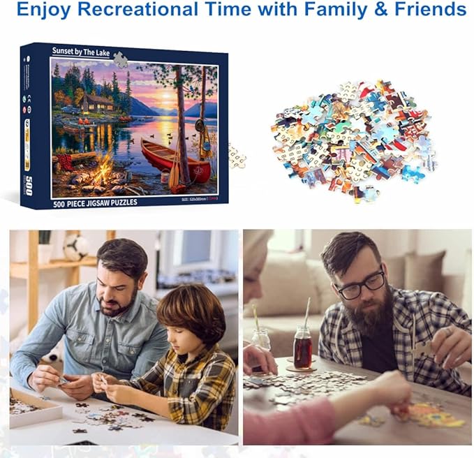 500 Piece Puzzles for Adults Sunset by The Lake 20.5 x 15 Inch 500 Piece Jigsaw Puzzles for Kids Adults Puzzles 500 Pieces for Adults Holiday Educational Challenge Toy