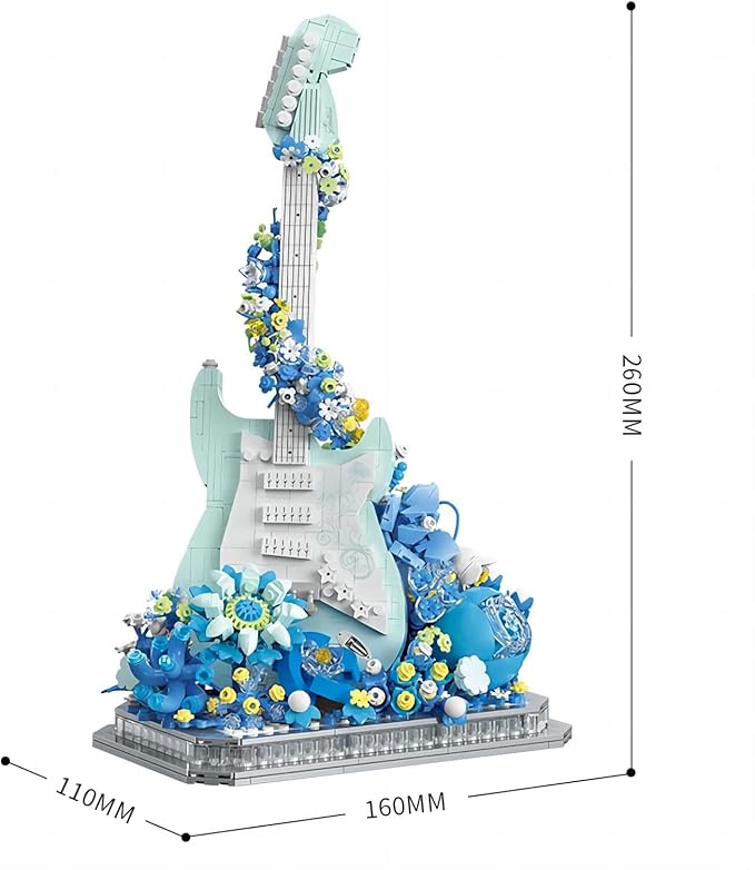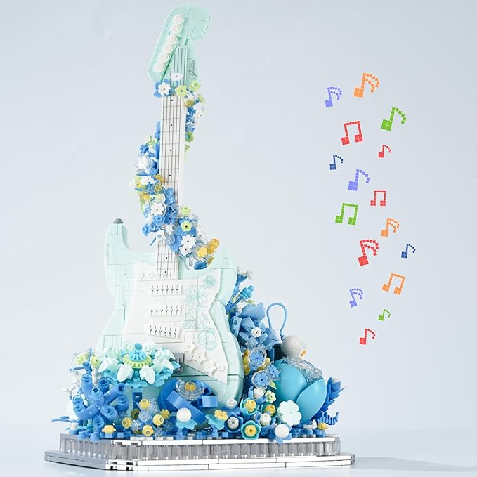 Flower Bouquet Guitar Building Blocks Set, 1125PCS Music Instruments Guitar Bricks Set, Gifts for Adults and Kids (bass)