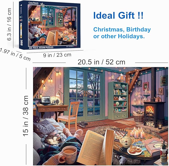 500 Piece Puzzles for Adults Cozy Room 20.5 x 15 Inch 500 Piece Jigsaw Puzzles for Kids Adults Puzzles 500 Pieces for Adults Holiday Educational Challenge Toy