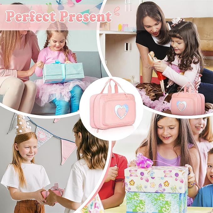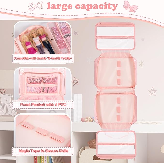 Carrying Case Compatible with Barbie Dolls 12-Inch, Storage Organizer with Handle Holds up to 6 Dolls,Multiple Pockets for Accessories,Toy Storage Box, Pink,Bag Only