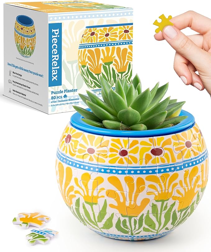 PieceRelax 3D Puzzle Planter 80 Pieces - Summer Blossoms, Home Decor Flower Pots for Indoor Cactus, Succulents Pots [K1126]