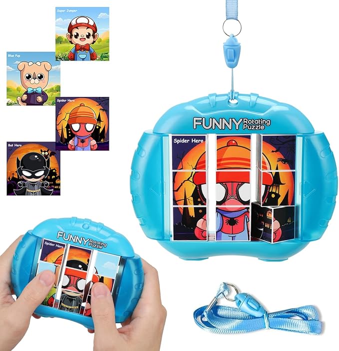 • Compact and Travel-Friendly - This rotating puzzle toy features a lanyard design, making it easy to carry wherever you go. Perfect for car rides, flights, or on-the-go play. The all-in-one design ensures no lost pieces—parents can relax while kids stay entertained!