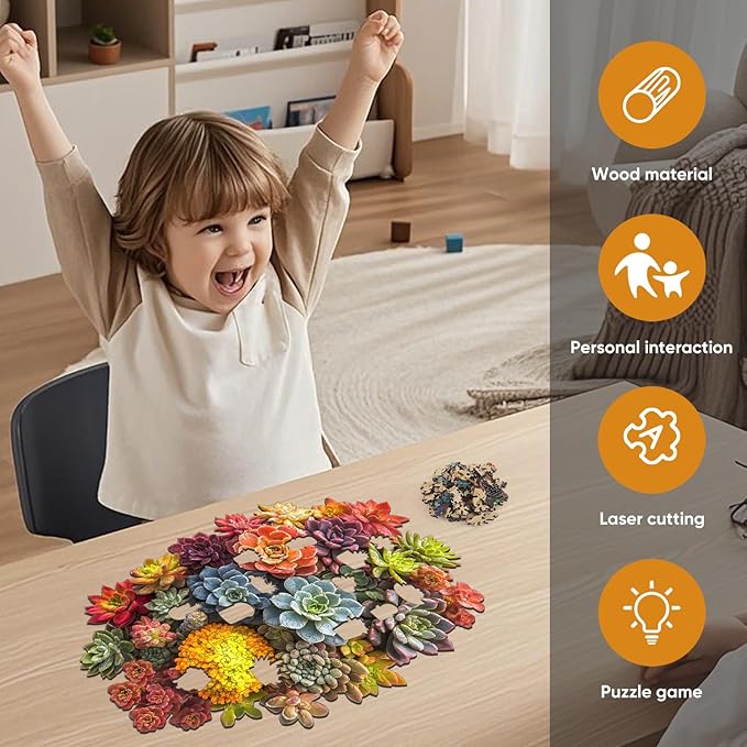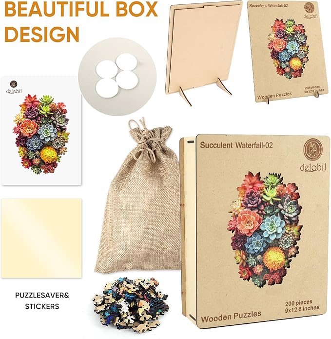 delobi Succulent Waterfall Wooden Puzzles, 200 Pieces Jigsaw Puzzles 13.1'' x 8.9'', Unique Design Liberty Wooden Puzzles for Adults and Kids, Family Game Gift Royal Size