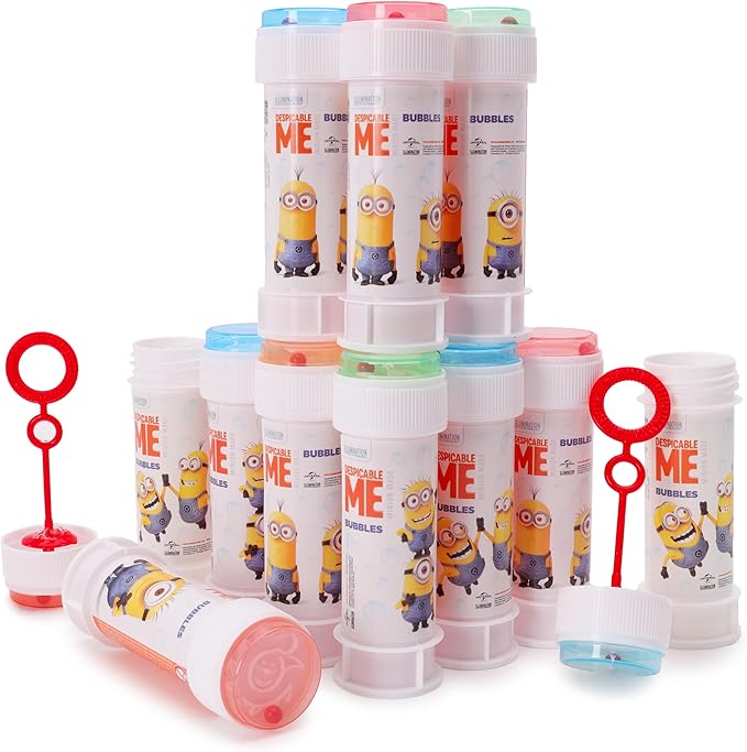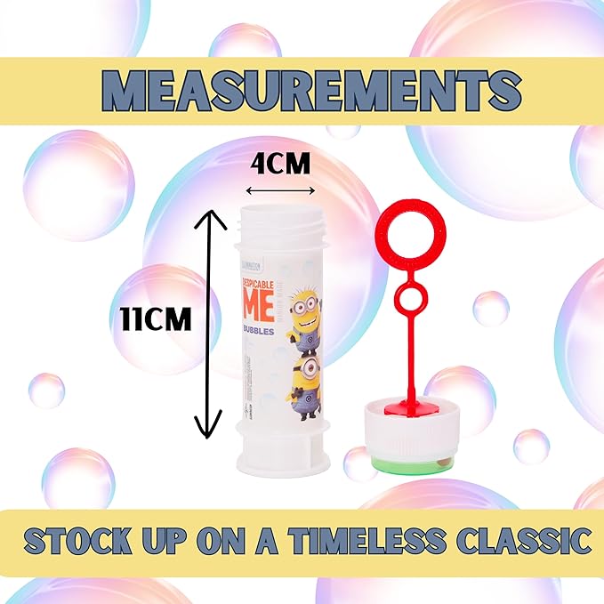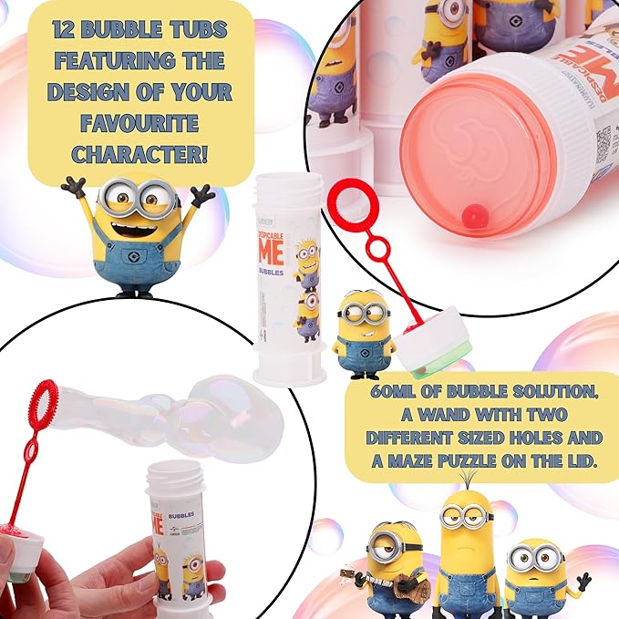 Toyland® Pack of 12 Minions Bubbles with Wands, 60ml Solution & Novelty Maze Lid - Pocket Money & Party Bag Toys