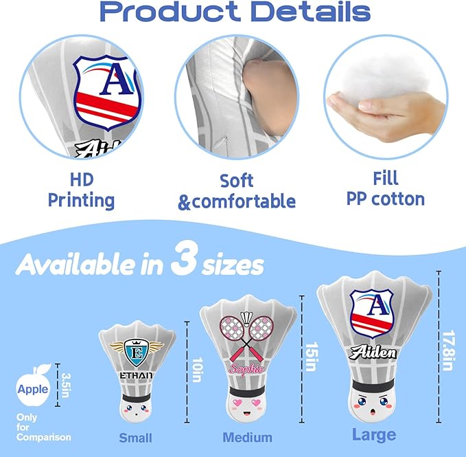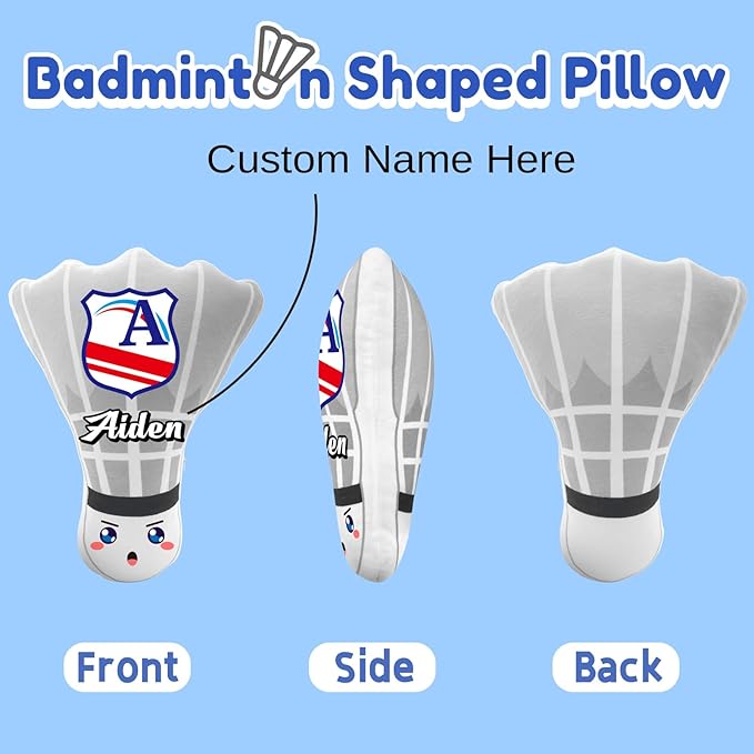 Custom BadmintonPillows with Text Badminton Plush Stuff for Boys Girls Creative Room Decor Personalized Pillows Toy Birthday Party Easter Gifts for Boys Girls Toddler Kids Adults