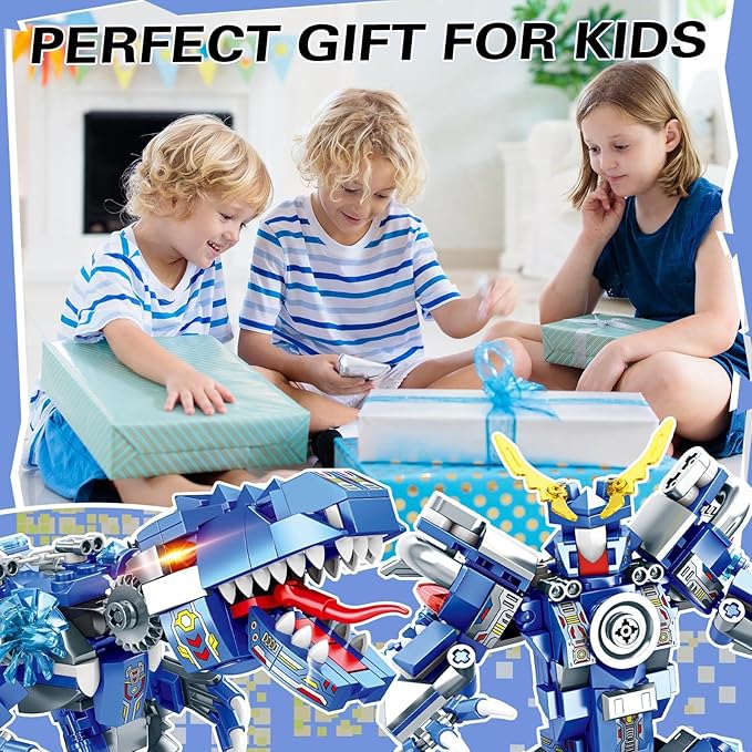 Dinosaur Building Blocks 2 in 1 Transforming Mech, Compatible with Lego Dinosaur Set, 433 PCS Dinosaur Mech STEM Toys for Kids Ages 6-12, Dinosaur Toy Gift for Christmas & Birthday