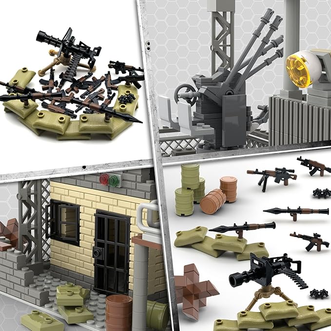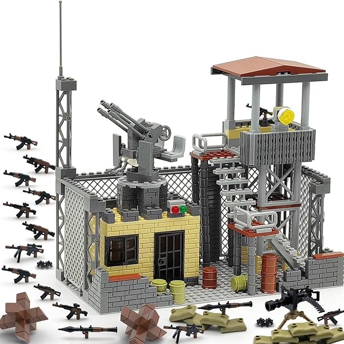About This 1.Modern Military base: Package include protection net, guard tower, prison, air defence gun, heavy machine guns, sandbag, roadblock,rifles,... Read more