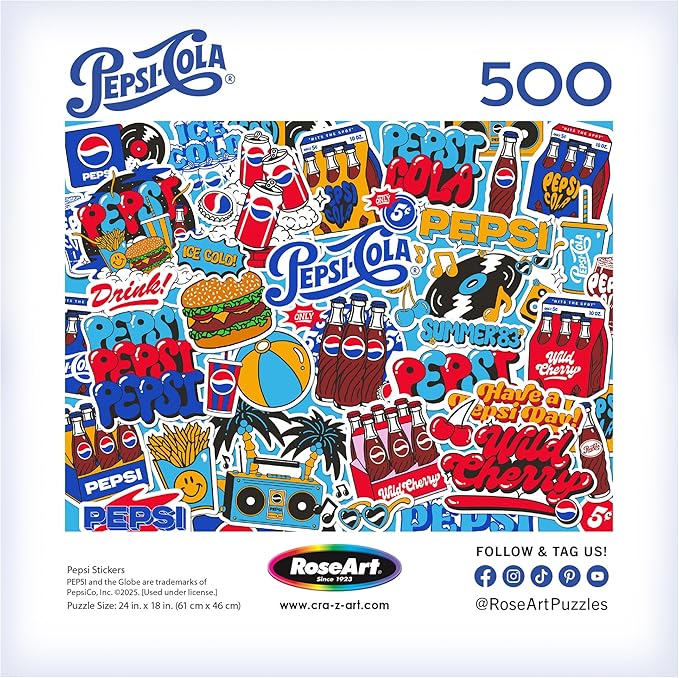 RoseArt - Snack Assortment - Pepsi Cola - 500 Piece Jigsaw Puzzle, Nostalgic Pepsi Design for Adults
