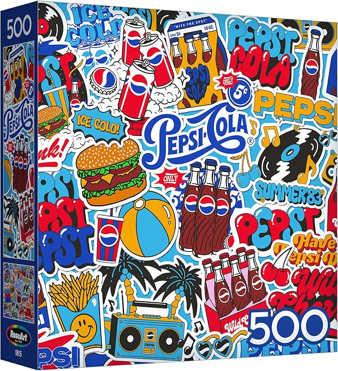 About This JIGSAW PUZZLE FUN: RoseArt Snack Assortment Pepsi Cola 500 Piece Jigsaw Puzzle is vibrant collage of Pepsi-branded icons... Read more
