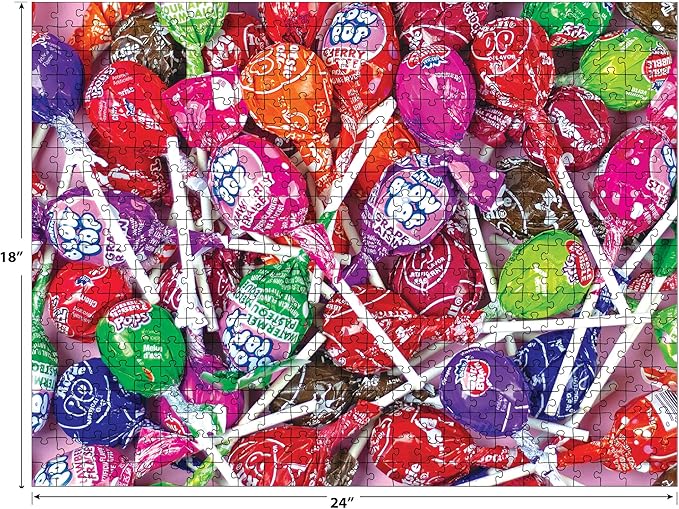 RoseArt - Snack Assortment- Blow Pop & Tootsie Roll Lollipop - 500 Piece Jigsaw Puzzle, Candy-Themed Puzzle for Adults