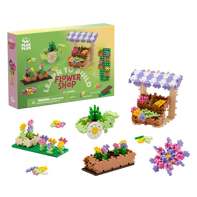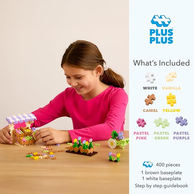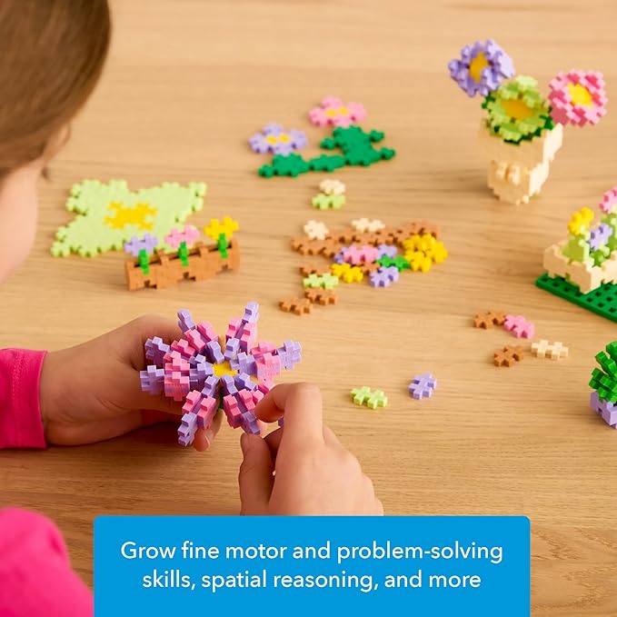 PLUS PLUS Learn to Build Set, Interlocking Mini Building Blocks, 3D Puzzle Construction Stem Toy for Kids - Flower Shop Mix, 400 Pieces
